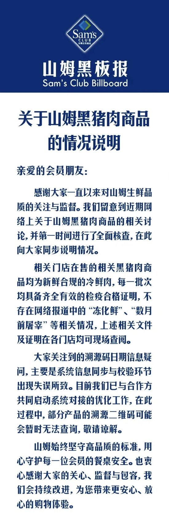 鲜猪肉竟是数个月前屠宰?山姆:系统信息同步与校验环节出现失误所致